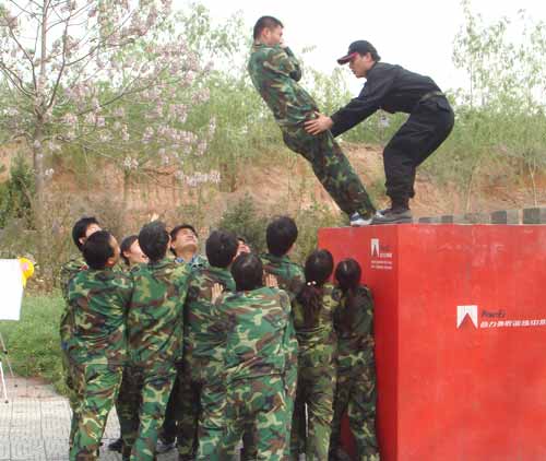畢業(yè)墻是最后的一項(xiàng)拓展項(xiàng)目,攀上了畢業(yè)墻也就代表者課程的圓滿結(jié)束,公司在畢業(yè)墻前召開了誓師大會(huì),參訓(xùn)員工都在鮮紅的營旗上寫下了自己的諾言,用一個(gè)個(gè)名字表示著一顆顆團(tuán)結(jié)、火熱的心。最后,在全體參訓(xùn)員工的共同努力下,我們用歷時(shí)8分鐘的好成績(jī)刷新了該訓(xùn)練基地該項(xiàng)目的用時(shí)紀(jì)錄,也給公司交上了一份滿意的答卷。