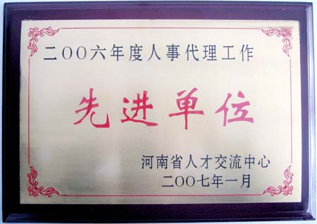 2007年1月28日,河南省人事代理先進(jìn)單位表彰大會(huì)在河南省“戰(zhàn)友大酒店”隆重召開(kāi),根據(jù)《關(guān)于表彰2006年度人事代理工作先進(jìn)單位和先進(jìn)工作才的決定》(豫人才發(fā)〔2007〕3號(hào)),我公司繼2004年度、2005年度兩次被評(píng)為“河南省人事代理先進(jìn)單位”之后,再獲此殊榮。公司人力資源部喬經(jīng)理等同志被表彰為先進(jìn)工作者。