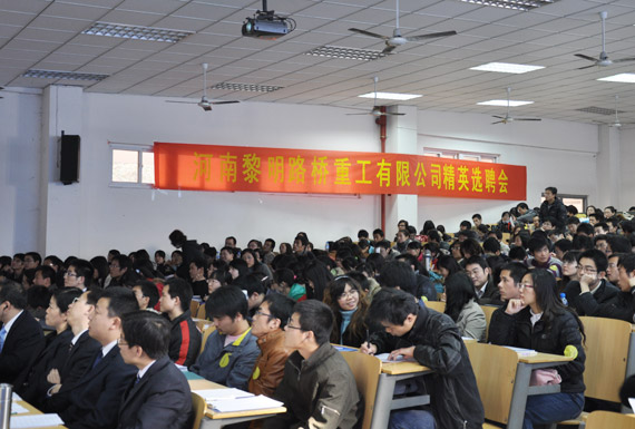 河南黎明重工科技股份有限公司(原河南黎明路橋重工有限公司)2010年校園大型精英選聘會(huì)自11月20日開啟以來,已先后在西安交通大學(xué)、鄭州大學(xué),河南科技大學(xué)、太原理工大學(xué)等十幾所知名高校成功舉行了多次大型專場(chǎng)招聘會(huì),每場(chǎng)應(yīng)聘人數(shù)均在200人以上,其中在鄭州大學(xué)同時(shí)參加選聘會(huì)的同學(xué)多達(dá)500余人,在西安交通大學(xué)參加的同學(xué)也有近300人之多。