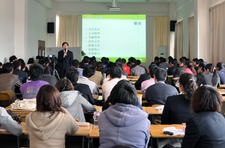 4月27日,陽(yáng)光和煦,萬(wàn)物爭(zhēng)春,黎明重工科技2010年新入職員工迎來(lái)了職業(yè)培訓(xùn)中重要的一課內(nèi)容——由公司人力資源部喬經(jīng)理主持的主題為“知行、行知”的大型講座。培訓(xùn)現(xiàn)場(chǎng)140余人,持續(xù)近7個(gè)小時(shí),黎明重工科技2010年新員工齊聚一堂,共同分享了這一匯聚理論、歷經(jīng)實(shí)踐的精神大餐。