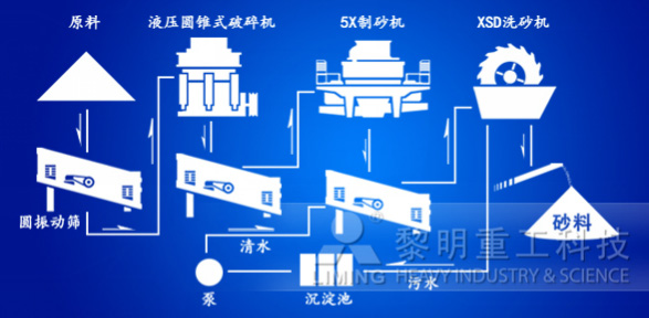 山東某老板投資300萬元建設(shè)砂場,以700mm以下的河卵石為原料生產(chǎn)機(jī)制砂。該場采用黎明重工的GZD1100*4200振動(dòng)給料機(jī)、PE750*1060顎式破碎機(jī)、CS160圓錐式破碎機(jī)、5X1145制砂機(jī)、3YZS2460振動(dòng)篩、XSD3016洗砂機(jī)兩臺(tái)的機(jī)制砂生產(chǎn)線配置,時(shí)產(chǎn)100方。如此,河道中90%以上的河卵石獲得開采利用,利用率的提高,相應(yīng)地創(chuàng)造了更大的利潤空間。
