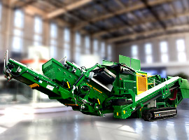 設備選用標志性產(chǎn)品I44反擊破履帶式移動破碎站,物料經(jīng)主設備反擊破處理后產(chǎn)出50mm以下的砂石骨料。反擊破采用4組板錘轉(zhuǎn)子和寬破碎腔,在保障高破碎能力的基礎(chǔ)上盡可能壓縮空間,板錘可直接吊出,非常方便。