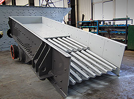工程師為客戶配置了KE1100-1粗碎移動站和KC160-2中細(xì)碎篩分移動站。當(dāng)大塊石料進(jìn)入料倉后,通過振動給料機(jī)進(jìn)入PEW1100歐版顎破進(jìn)行初次破碎,然后由皮帶輸送機(jī)將初碎后的石料送入CS160B圓錐破進(jìn)行二次破碎,破碎后由振動篩篩分出粒度為0-5mm、5-90mm的成品料。