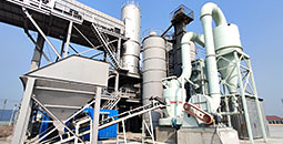 大塊物料經(jīng)顎式破碎機(jī)破碎到所需粒度30mm后,由提升機(jī)送至儲料斗,再由皮帶機(jī)將物料均勻定量連續(xù)地送入MTW175Z歐版磨的主機(jī)磨室內(nèi)進(jìn)行研磨。粉磨后的物料被風(fēng)機(jī)氣流送入選粉機(jī)進(jìn)行分級,在選粉機(jī)葉輪的作用下,不符合細(xì)度要求的物料落入磨室內(nèi)重新碾磨,合格的物料則經(jīng)空氣斜槽進(jìn)入旋風(fēng)集粉器內(nèi),進(jìn)行分離收集,經(jīng)排料裝置排出即為成品粉體。整個過程屬于閉路循環(huán)系統(tǒng),并在正負(fù)壓狀態(tài)下運(yùn)行,配備以脈沖除塵器,使得生產(chǎn)現(xiàn)場干凈、整潔。