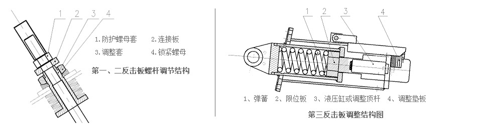 ②墊片式調(diào)整方式: 當調(diào)整排料口時,首先適度擰松拉緊部件的拉桿螺母,松開彈簧,然后再松開擋塊螺栓,松開擋塊,擰緊頂絲螺栓(把液壓起頂機頭部裝入頂頭,旋入機架后的螺母內(nèi),將液壓起頂機的出油閥打開,扳動手柄),頂絲螺栓(頂頭)向前推動調(diào)整座,達到一定的開口度時,取出調(diào)整墊片,以達到增大排料口的需要;若放入調(diào)整墊片,則可達到減小排料口的需要。在達到用戶所需的排料口尺寸后,首先松開頂絲螺栓(可打開液壓起頂機的進油閥,扳動手柄,松開頂頭)調(diào)整座在動顎部件自重的推力作用下,調(diào)整座及調(diào)整墊片組向機架后墻靠攏,壓實,注意頂絲螺栓(頂頭)松開程度應達到調(diào)整座向后墻靠攏,壓實后而不相接觸,再擰緊擋塊螺栓,將擋塊與調(diào)整座與機架牢固,適度擰緊拉桿螺母收緊彈簧,即完成調(diào)整排料口的工作。