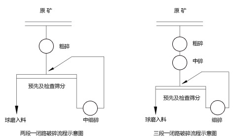 在具體破碎過程中,可以根據(jù)客戶對破碎比的不同要求,進行相應(yīng)的破碎作業(yè)。根據(jù)不同的礦石性質(zhì)和使用破碎機的性能可以將總破碎比分成兩段或三段來實現(xiàn)。