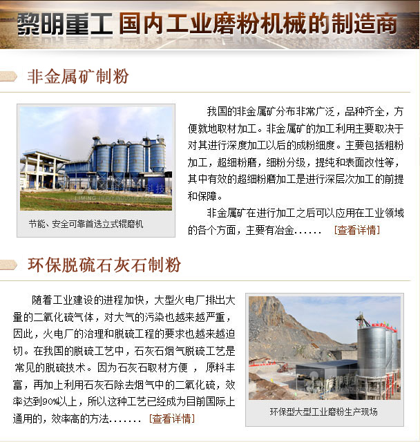 該細度范圍內的重鈣粉加工可選擇黎明重工新專利產(chǎn)品歐版磨機和立式磨機等產(chǎn)品,系統(tǒng)均為干法生產(chǎn),實現(xiàn)自磨自選...